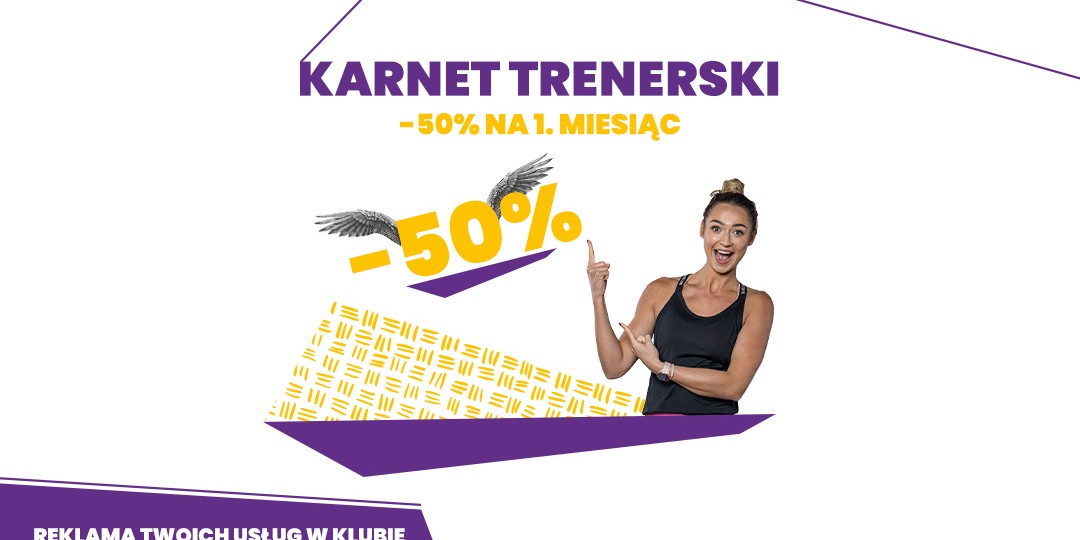 Odbierz 50% rabatu na pierwszy miesiąc karnetu i trenuj w komfortowych warunkach ze swoimi Podopiecznymi. Zapewniamy dostęp 24/7 oraz reklamę Twoich usług w naszym klubie.
